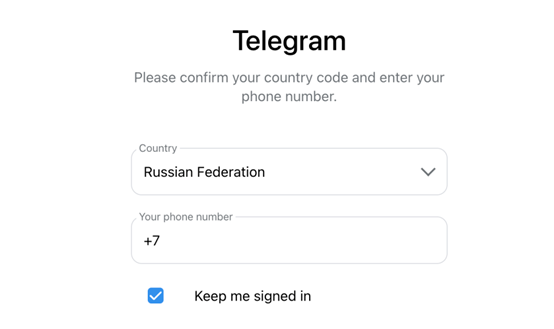 • 打开 Telegram 并选择“通过电话号码登录”选项。
