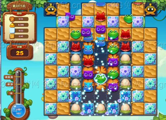 开心消消乐第1075关怎么打?开心消消乐是消除Q萌可爱的小动物们,将三个及以上相同颜色的小动物连成一条直线即可消除,老少皆宜!不会闯关的玩家快来看看G7小编带来的第1075关攻略吧!