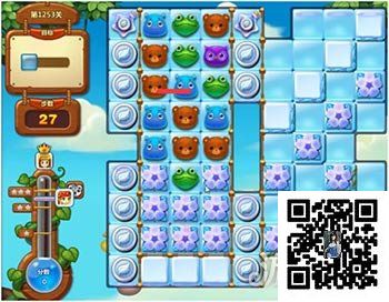 开心消消乐第1253关的过关任务依旧是消除冰块,这关要把左边下面的冰块打通,小动物才能到右边区域。首先我们从左边开始,将小棕熊和小河马交换。