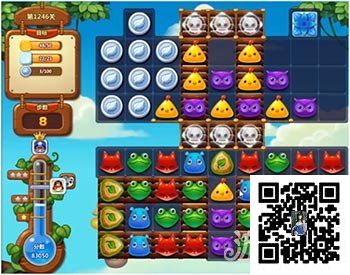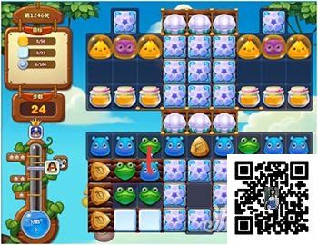 开心消消乐第1246关的过关任务是消除得到蜂蜜、银币和冰块,这关在水母和魔法石的作用下想必过关步是很难。