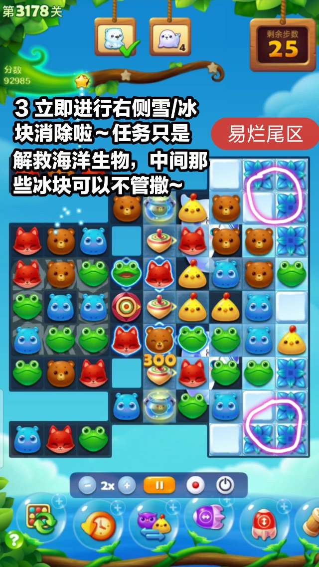本关为解救海洋生物,易烂尾区域在右下角。