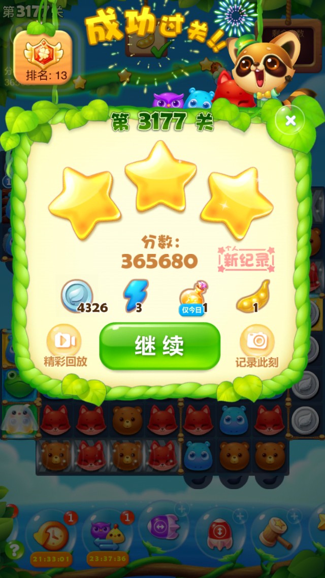 2、达到通关要求之后剩余步数会随机形成特效获得大量额外积分;
