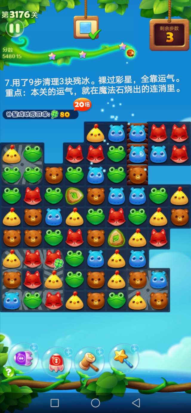 开心消消乐第3176关怎么打?开心消消乐是消除Q萌可爱的小动物们,将三个及以上相同颜色的小动物连成一条直线即可消除,老少皆宜!不会闯关的玩家快来看看G7小编带来的第3176关攻略吧!