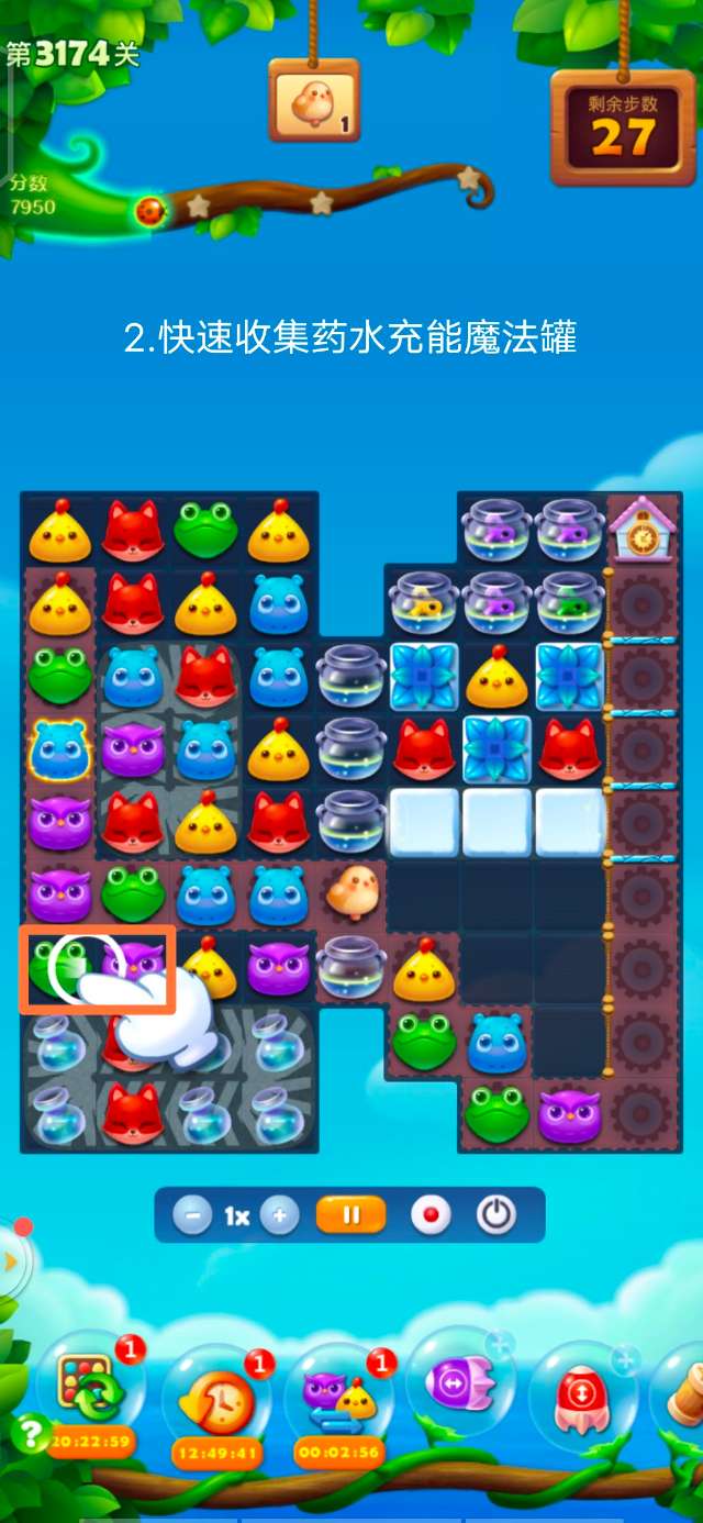 4.消除冰块后继续破罐,释放发条后组合特效收集,送布谷鸟归巢!