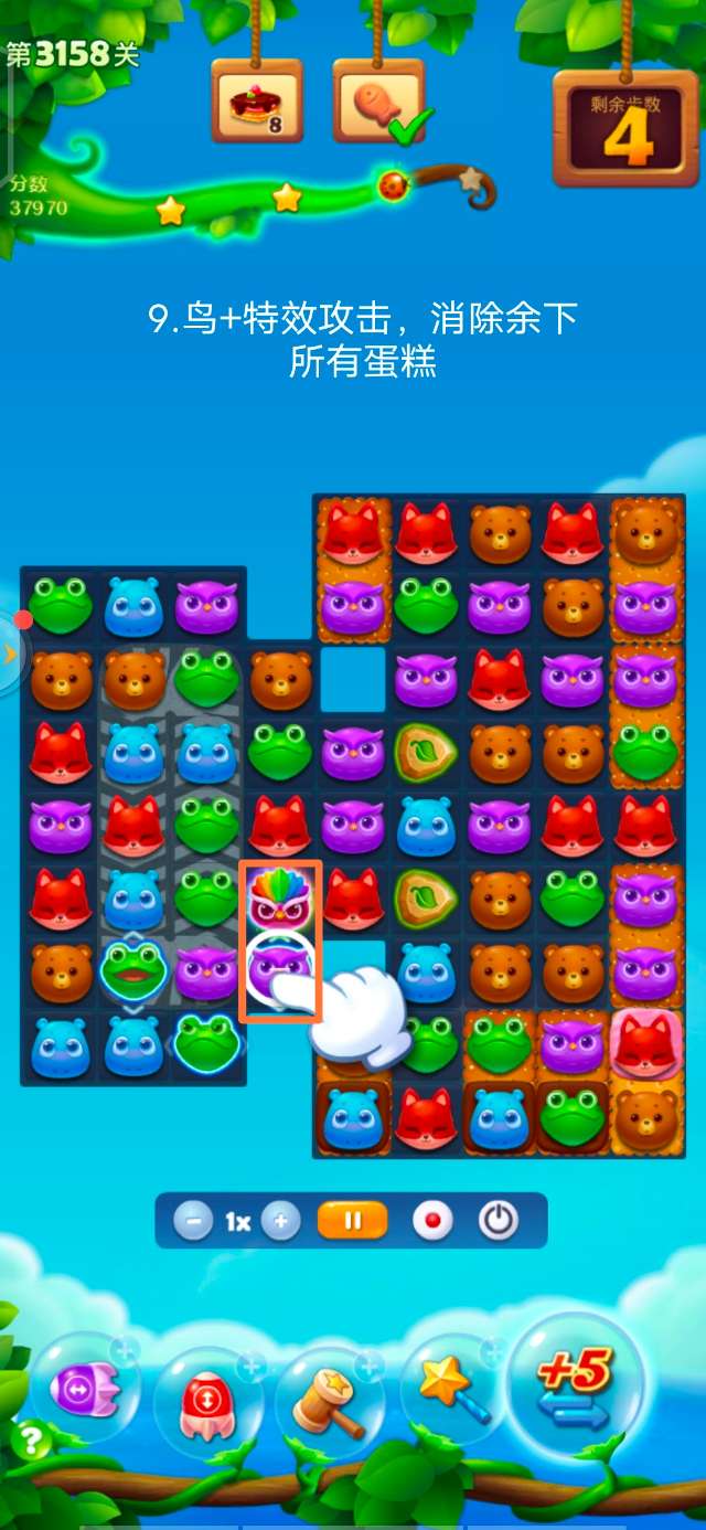 2、达到通关要求之后剩余步数会随机形成特效获得大量额外积分;