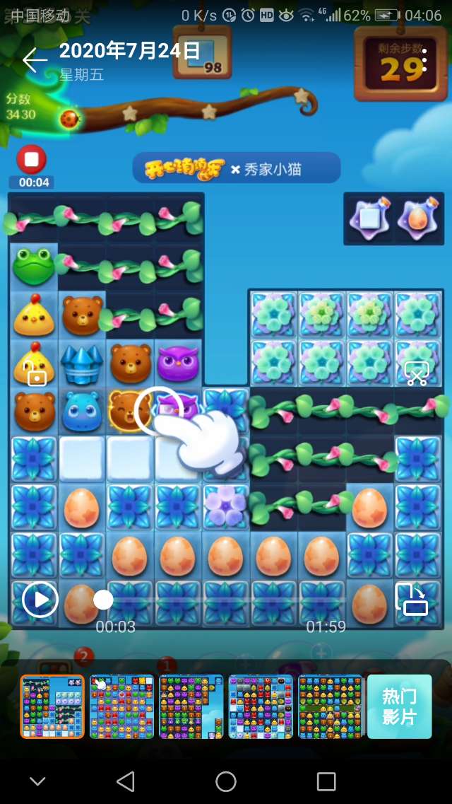 开始打左边的横三消莱蒙鸡消冰块,打爆左上角的牵牛花,接着打爆右下角的彩蛋和牵牛花给星星瓶充能亮了就交换!现在就兴大动作:三消不管用了,必须要组特效、鸟十、鸟单吸,还有飞机出现了也不要放过它的威力噢!