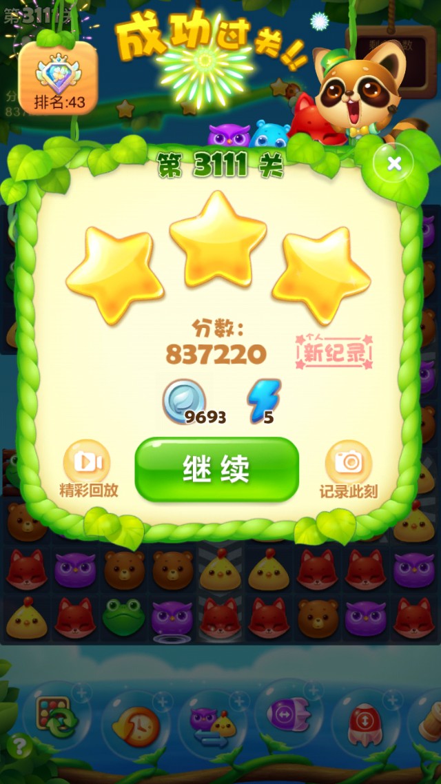 开心消消乐第3111关怎么过?它是一款以超萌超可爱的动物为形象的经典消除游戏,轻松滑动手指即可操作,打发时间的最佳选择。下面G7小编为大家带来第3111关三星攻略,不会闯关的小伙伴快来看看吧!
