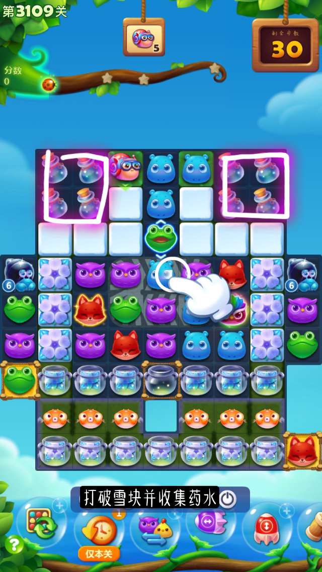 开心消消乐第3109关怎么打?开心消消乐是消除Q萌可爱的小动物们,将三个及以上相同颜色的小动物连成一条直线即可消除,老少皆宜!不会闯关的玩家快来看看G7小编带来的第3109关攻略吧!