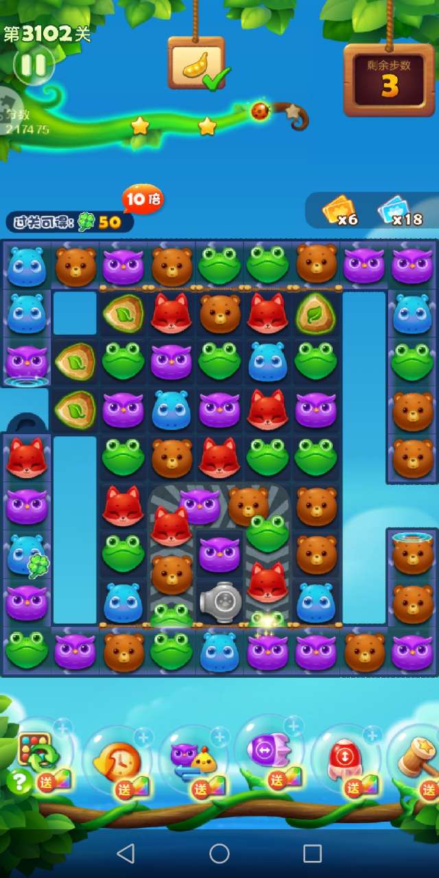 开心消消乐第3102关怎么打?开心消消乐是消除Q萌可爱的小动物们,将三个及以上相同颜色的小动物连成一条直线即可消除,老少皆宜!不会闯关的玩家快来看看G7小编带来的第3102关攻略吧!