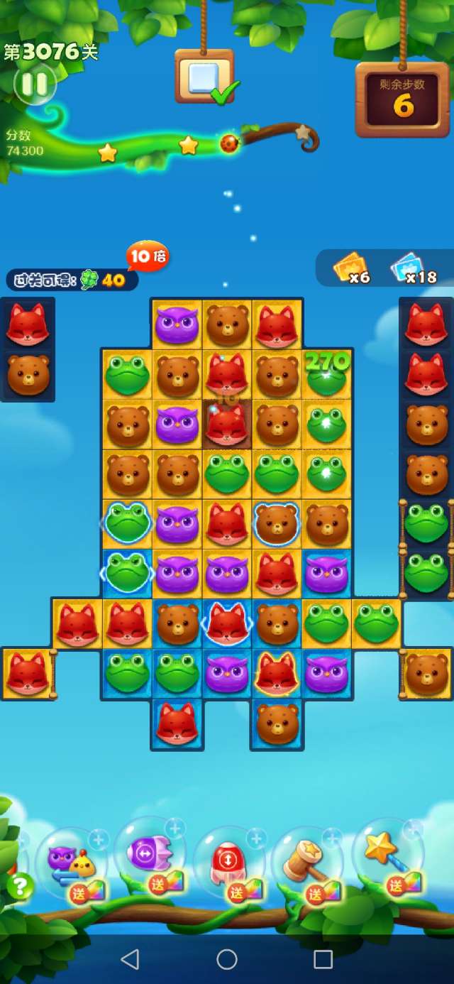 2、达到通关要求之后剩余步数会随机形成特效获得大量额外积分;