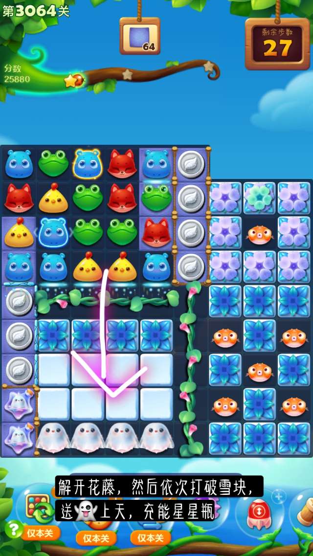 开心消消乐第3064关怎么过?它是一款以超萌超可爱的动物为形象的经典消除游戏,轻松滑动手指即可操作,打发时间的最佳选择。下面G7小编为大家带来第3064关三星攻略,不会闯关的小伙伴快来看看吧!