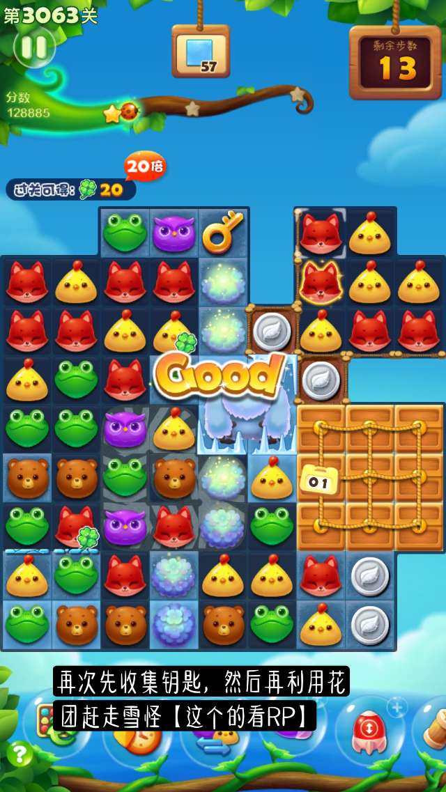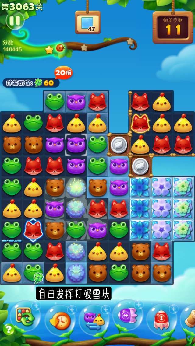 开心消消乐第3063关怎么打?开心消消乐是消除Q萌可爱的小动物们,将三个及以上相同颜色的小动物连成一条直线即可消除,老少皆宜!不会闯关的玩家快来看看G7小编带来的第3063关攻略吧!
