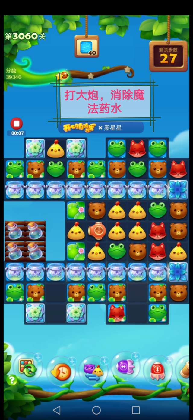 1.前期难点,消除大炮消除魔法药水,比较看脸,运气不好可能消耗步数较多