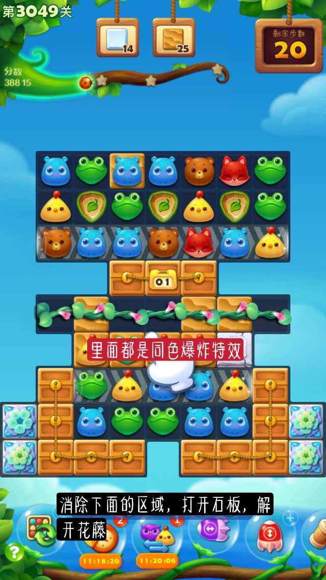 开心消消乐第3049关怎么打?开心消消乐是消除Q萌可爱的小动物们,将三个及以上相同颜色的小动物连成一条直线即可消除,老少皆宜!不会闯关的玩家快来看看G7小编带来的第3049关攻略吧!