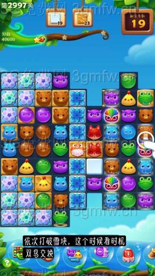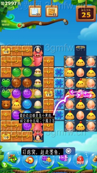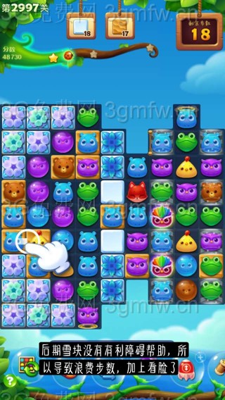 开心消消乐第2997关怎么打?开心消消乐是消除Q萌可爱的小动物们,将三个及以上相同颜色的小动物连成一条直线即可消除,老少皆宜!不会闯关的玩家快来看看G7小编带来的第2997关攻略吧!