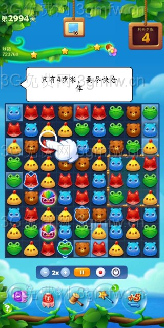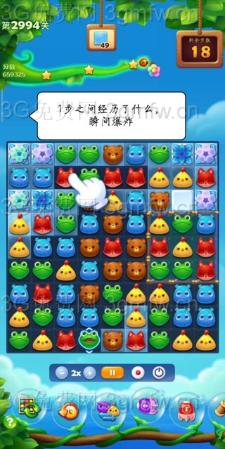 开心消消乐第2994关怎么打?开心消消乐是消除Q萌可爱的小动物们,将三个及以上相同颜色的小动物连成一条直线即可消除,老少皆宜!不会闯关的玩家快来看看G7小编带来的第2994关攻略吧!