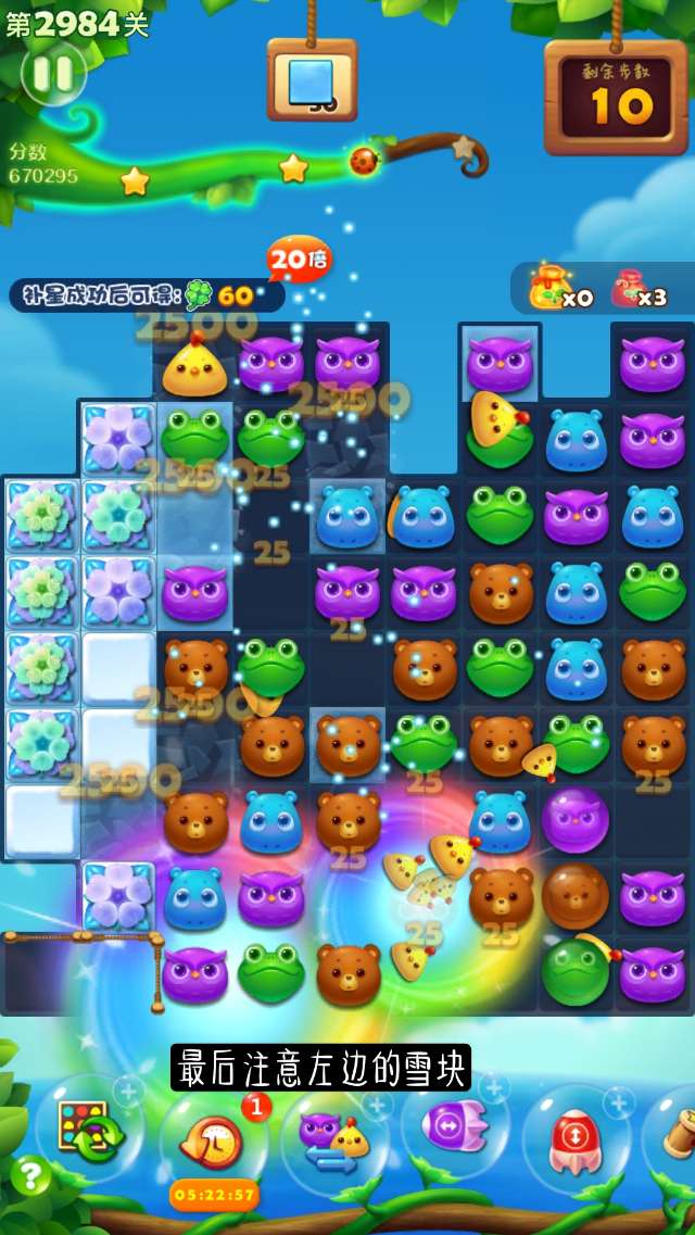难点解析,左边雪块都超过四层,所以判定为容易烂尾区域,这个关就是第二个超难关