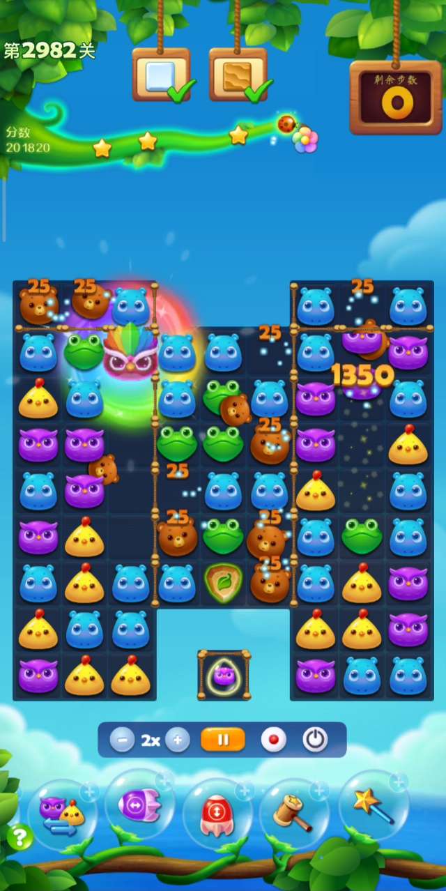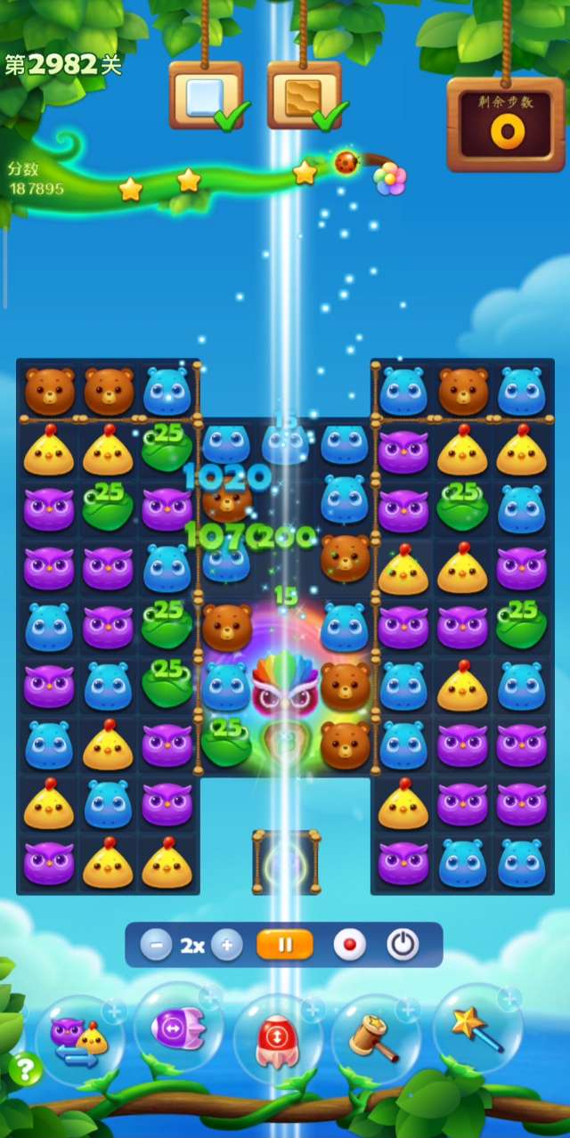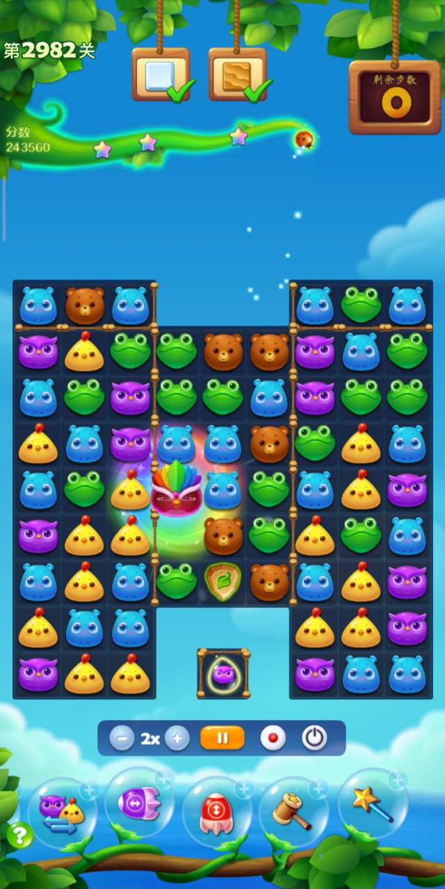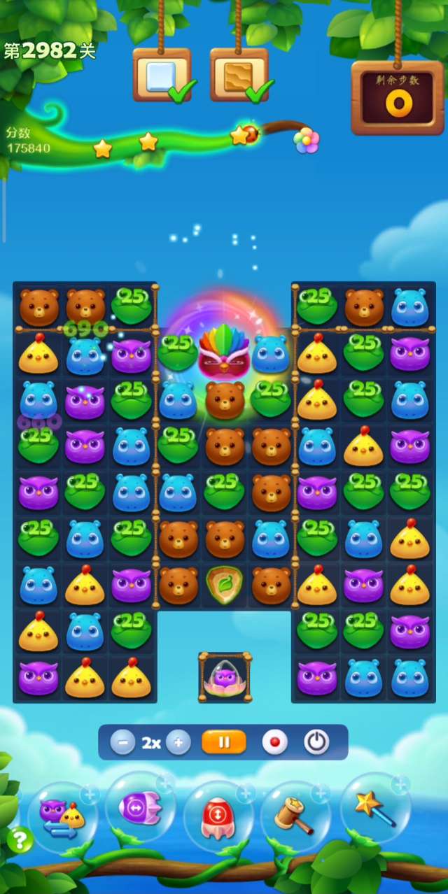 开心消消乐第2982关怎么打?开心消消乐是消除Q萌可爱的小动物们,将三个及以上相同颜色的小动物连成一条直线即可消除,老少皆宜!不会闯关的玩家快来看看G7小编带来的第2982关攻略吧!