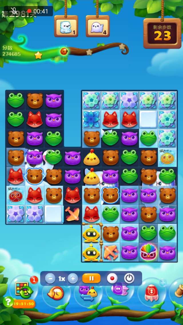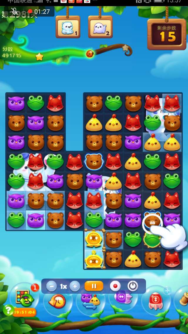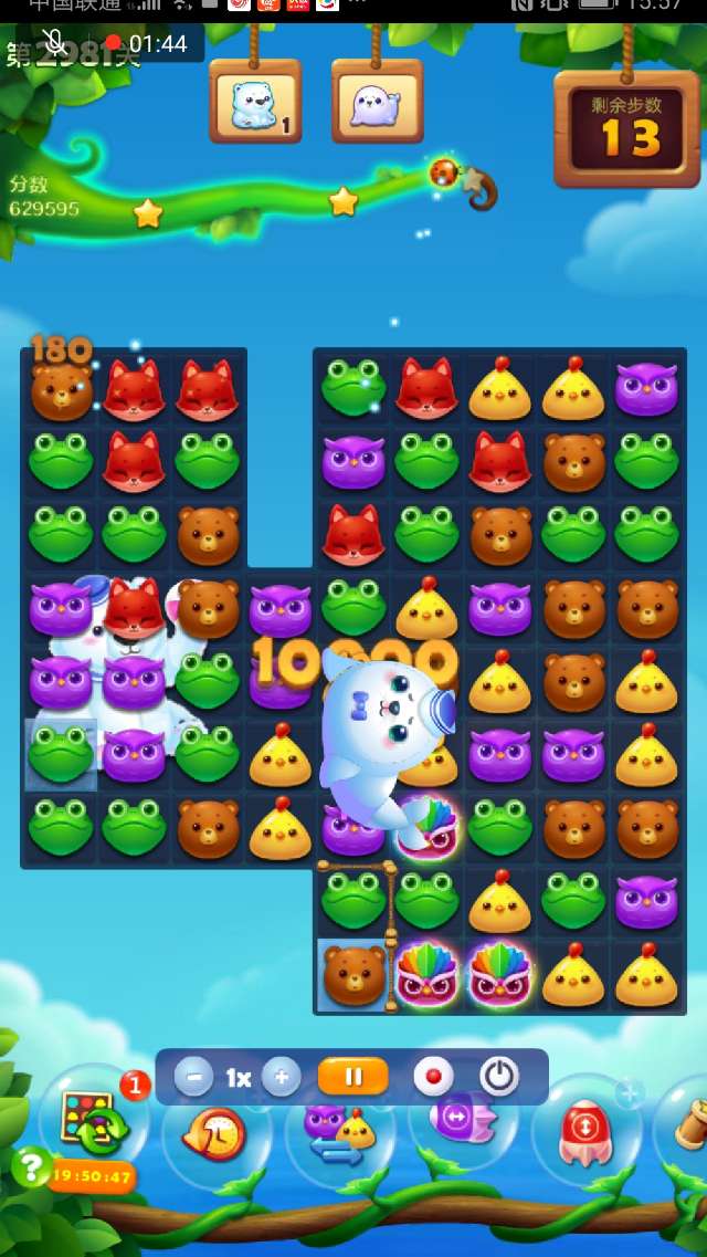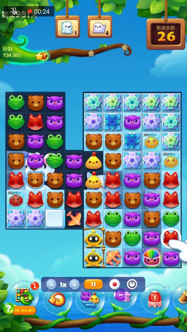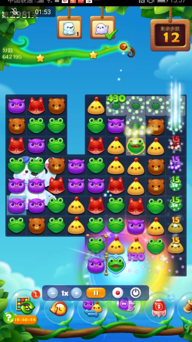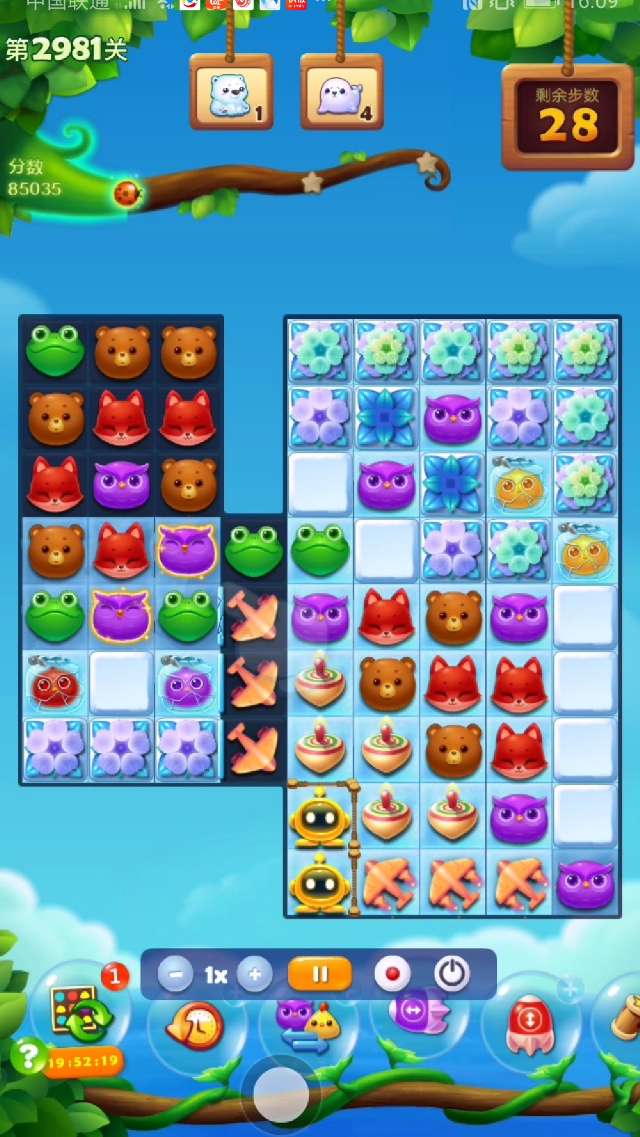 2、右下部分空间打开后尽量组竖直特效向上↑攻击,在打开大部空间时可交换染色宝宝,幸运時可出现多个魔力鸟,双鸟清屏一波,冰层所剩无几,逐个消灭!
