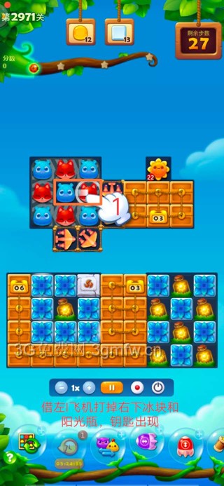 本关旨在借飞机之力打开局面,然后全力打破蜜蜂罐,收集蜂蜜。加油!