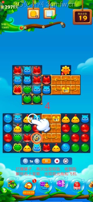 开心消消乐第2971关怎么过?它是一款以超萌超可爱的动物为形象的经典消除游戏,轻松滑动手指即可操作,打发时间的最佳选择。下面G7小编为大家带来第2971关三星攻略,不会闯关的小伙伴快来看看吧!