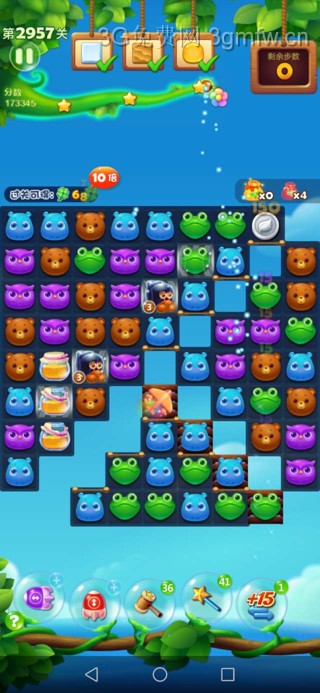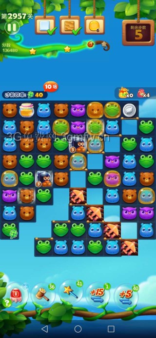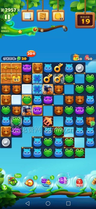 开心消消乐第2957关怎么打?开心消消乐是消除Q萌可爱的小动物们,将三个及以上相同颜色的小动物连成一条直线即可消除,老少皆宜!不会闯关的玩家快来看看G7小编带来的第2957关攻略吧!