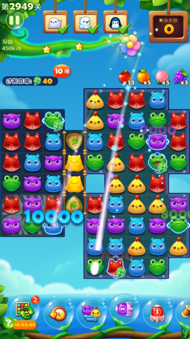 2、达到通关要求之后剩余步数会随机形成特效获得大量额外积分;