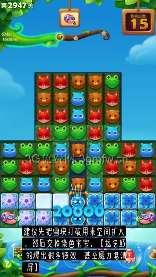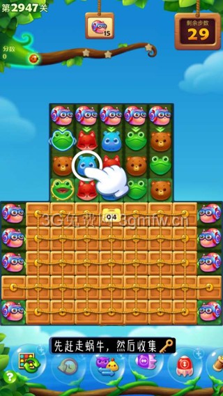 开心消消乐第2947关怎么打?开心消消乐是消除Q萌可爱的小动物们,将三个及以上相同颜色的小动物连成一条直线即可消除,老少皆宜!不会闯关的玩家快来看看G7小编带来的第2947关攻略吧!