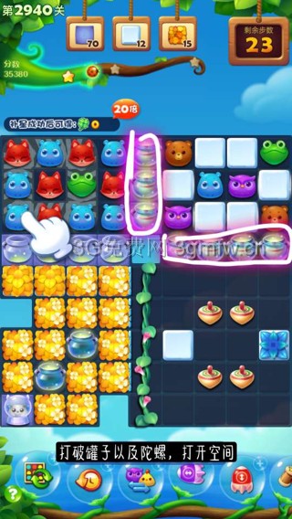 开心消消乐第2940关怎么打?开心消消乐是消除Q萌可爱的小动物们,将三个及以上相同颜色的小动物连成一条直线即可消除,老少皆宜!不会闯关的玩家快来看看G7小编带来的第2940关攻略吧!