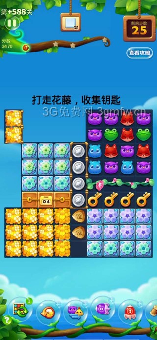 开心消消乐第+588关怎么过?它是一款以超萌超可爱的动物为形象的经典消除游戏,轻松滑动手指即可操作,打发时间的最佳选择。下面G7小编为大家带来第+588关三星攻略,不会闯关的小伙伴快来看看吧!