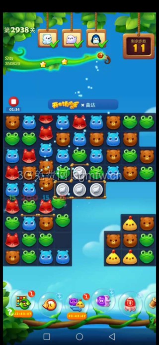 开心消消乐第2938关怎么打?开心消消乐是消除Q萌可爱的小动物们,将三个及以上相同颜色的小动物连成一条直线即可消除,老少皆宜!不会闯关的玩家快来看看G7小编带来的第2938关攻略吧!
