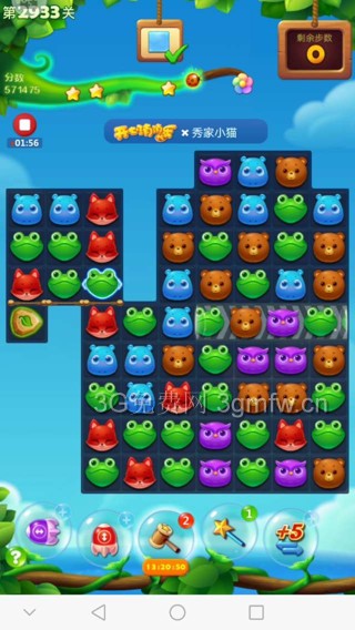 2933冰块关困难关兼押金豆子关!裸打:开始打左上角竖着的三消青蛙激活魔石,打爆牵牛花!打爆飞机。就在右边打就可以了!特别是右上角的厚厚的冰块是难点!最后一步三星了
