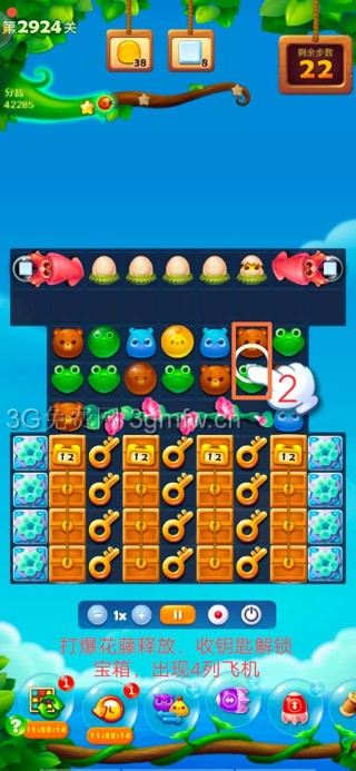 开心消消乐第2924关怎么打?开心消消乐是消除Q萌可爱的小动物们,将三个及以上相同颜色的小动物连成一条直线即可消除,老少皆宜!不会闯关的玩家快来看看G7小编带来的第2924关攻略吧!