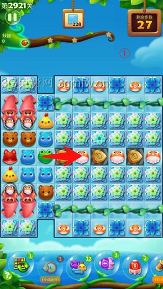 开心消消乐第2921关怎么打?开心消消乐是消除Q萌可爱的小动物们,将三个及以上相同颜色的小动物连成一条直线即可消除,老少皆宜!不会闯关的玩家快来看看G7小编带来的第2921关攻略吧!