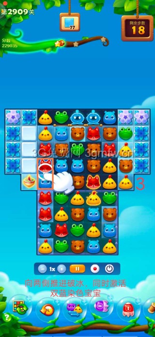 开心消消乐第2909关怎么打?开心消消乐是消除Q萌可爱的小动物们,将三个及以上相同颜色的小动物连成一条直线即可消除,老少皆宜!不会闯关的玩家快来看看G7小编带来的第2909关攻略吧!