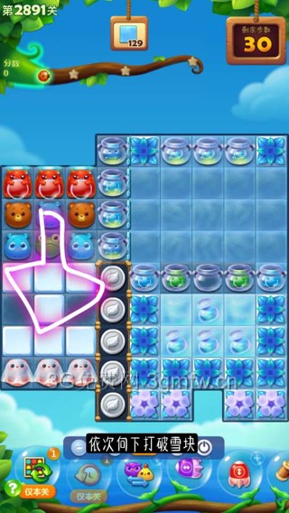开心消消乐第2891关怎么打?开心消消乐是消除Q萌可爱的小动物们,将三个及以上相同颜色的小动物连成一条直线即可消除,老少皆宜!不会闯关的玩家快来看看G7小编带来的第2891关攻略吧!