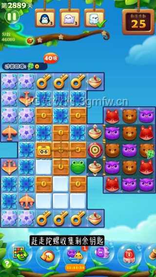 开心消消乐第2889关怎么打?开心消消乐是消除Q萌可爱的小动物们,将三个及以上相同颜色的小动物连成一条直线即可消除,老少皆宜!不会闯关的玩家快来看看G7小编带来的第2889关攻略吧!