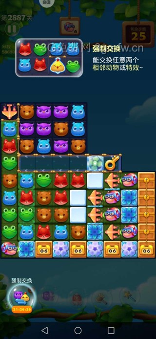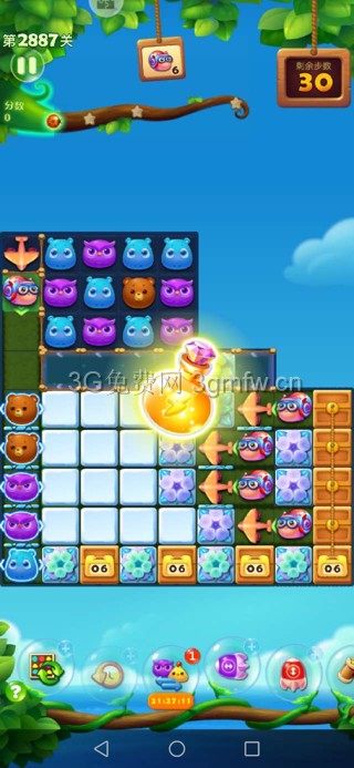 开心消消乐第2887关怎么打?开心消消乐是消除Q萌可爱的小动物们,将三个及以上相同颜色的小动物连成一条直线即可消除,老少皆宜!不会闯关的玩家快来看看G7小编带来的第2887关攻略吧!