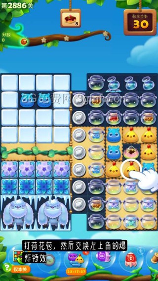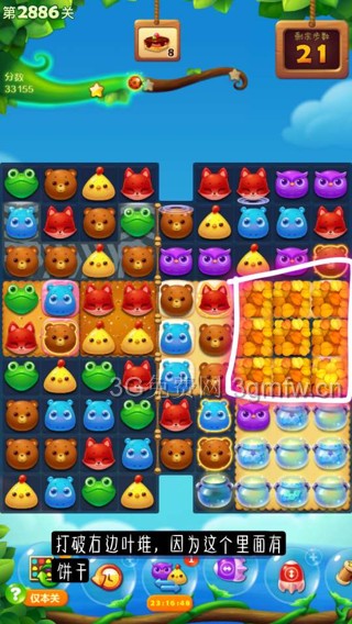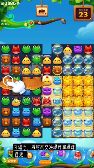 开心消消乐第2886关怎么打?开心消消乐是消除Q萌可爱的小动物们,将三个及以上相同颜色的小动物连成一条直线即可消除,老少皆宜!不会闯关的玩家快来看看G7小编带来的第2886关攻略吧!