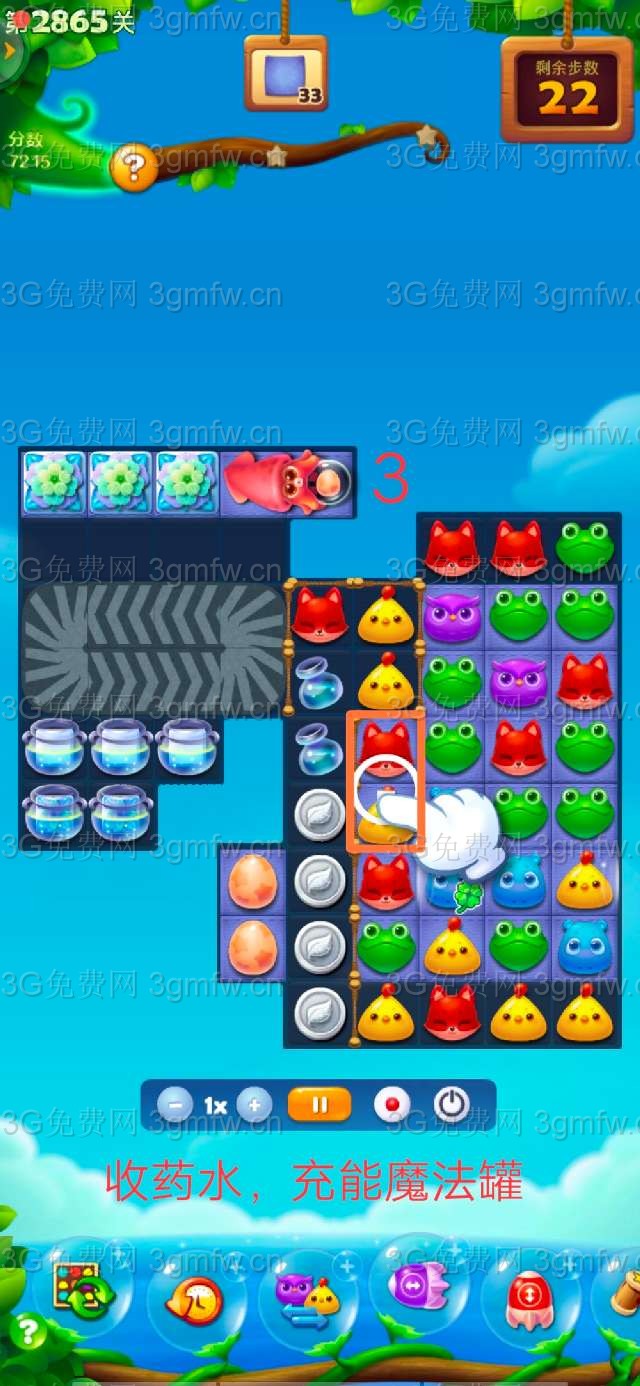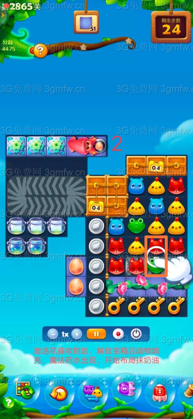 2.激活花藤收钥匙,解锁宝箱后动物填充,魔法药水出现,开始布局抹奶油;