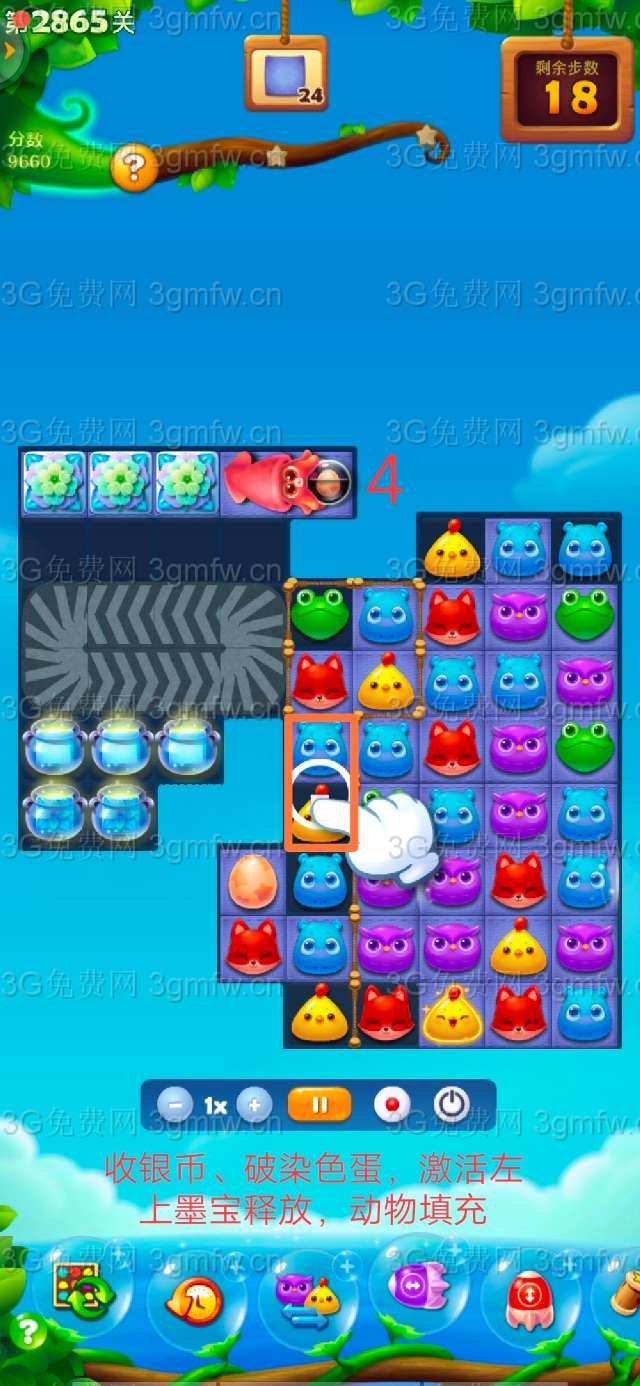4.收银币、破染色蛋、激活墨宝释放,动物填充;