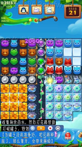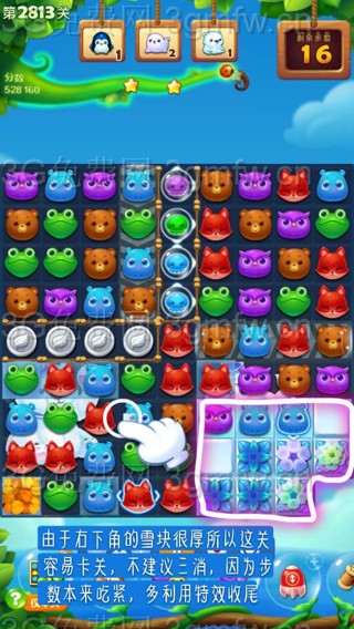 开心消消乐第2813关怎么打?开心消消乐是消除Q萌可爱的小动物们,将三个及以上相同颜色的小动物连成一条直线即可消除,老少皆宜!不会闯关的玩家快来看看G7小编带来的第2813关攻略吧!