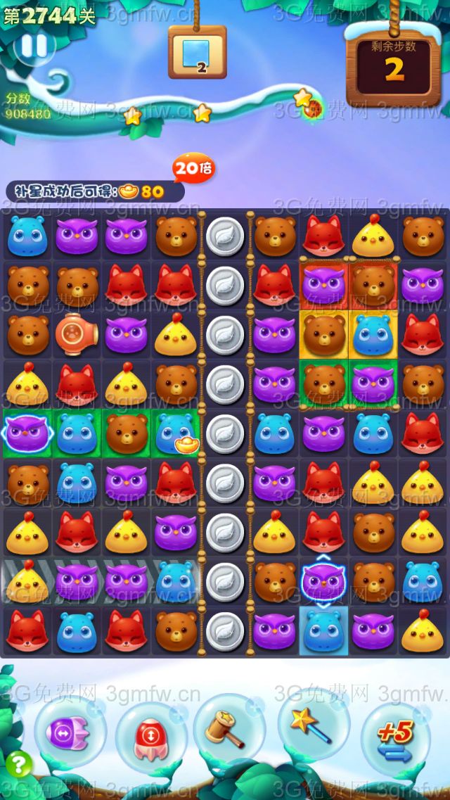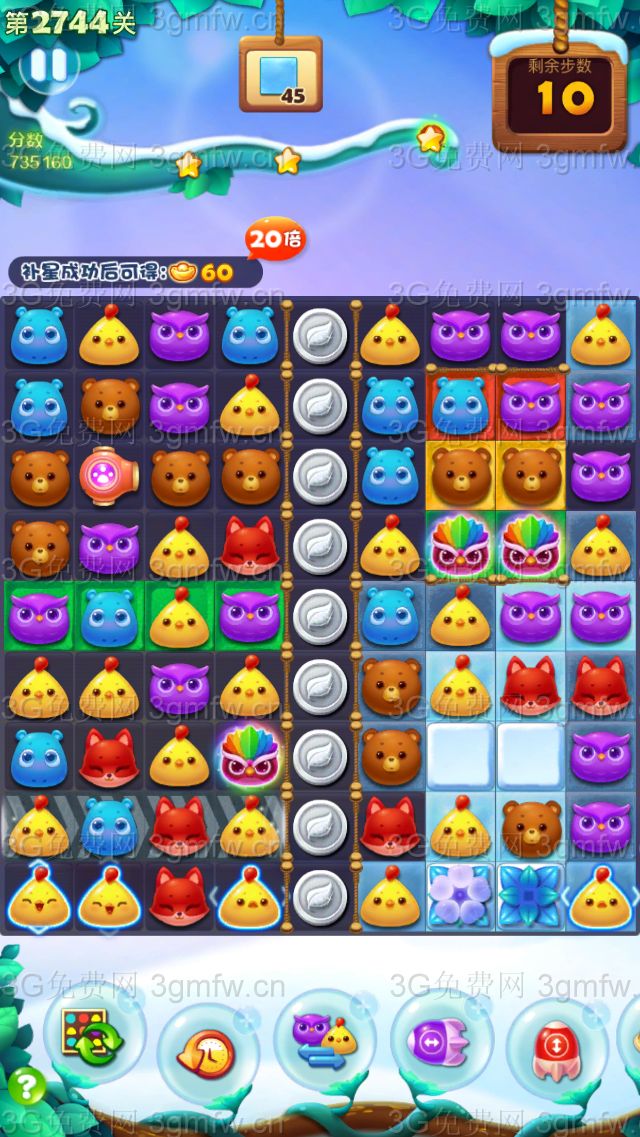 开心消消乐第2744关怎么打?开心消消乐是消除Q萌可爱的小动物们,将三个及以上相同颜色的小动物连成一条直线即可消除,老少皆宜!不会闯关的玩家快来看看G7小编带来的第2744关攻略吧!