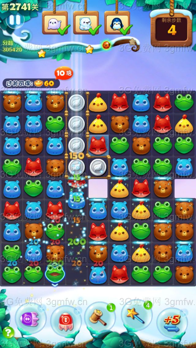 2、达到通关要求之后剩余步数会随机形成特效获得大量额外积分;
