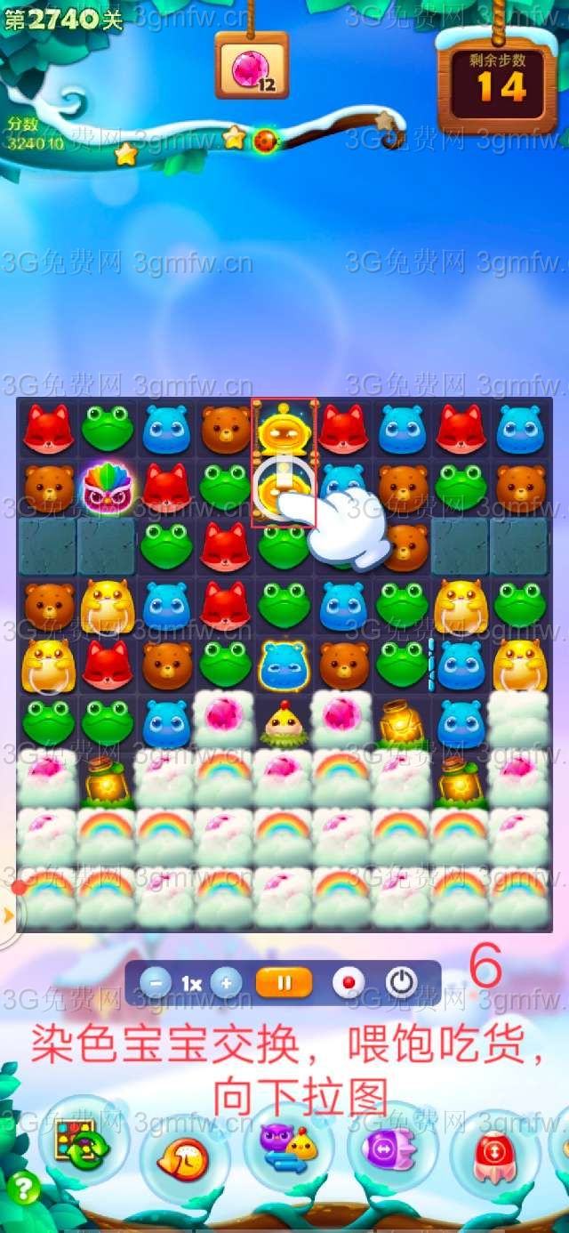 4.交换染色宝宝,喂饱蓄电精灵,向下拉图;