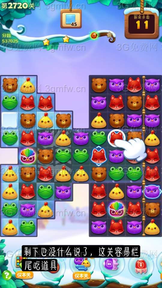 开心消消乐第2720关怎么过?它是一款以超萌超可爱的动物为形象的经典消除游戏,轻松滑动手指即可操作,打发时间的最佳选择。下面G7小编为大家带来第2720关三星攻略,不会闯关的小伙伴快来看看吧!