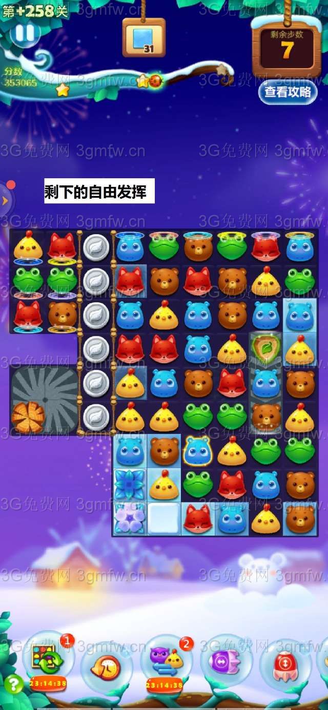 开心消消乐第+258关怎么打?开心消消乐是消除Q萌可爱的小动物们,将三个及以上相同颜色的小动物连成一条直线即可消除,老少皆宜!不会闯关的玩家快来看看G7小编带来的第+258关攻略吧!