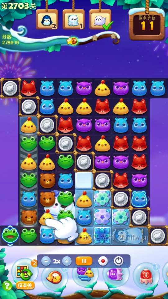 开心消消乐第2703关怎么打?开心消消乐是消除Q萌可爱的小动物们,将三个及以上相同颜色的小动物连成一条直线即可消除,老少皆宜!不会闯关的玩家快来看看G7小编带来的第2703关攻略吧!