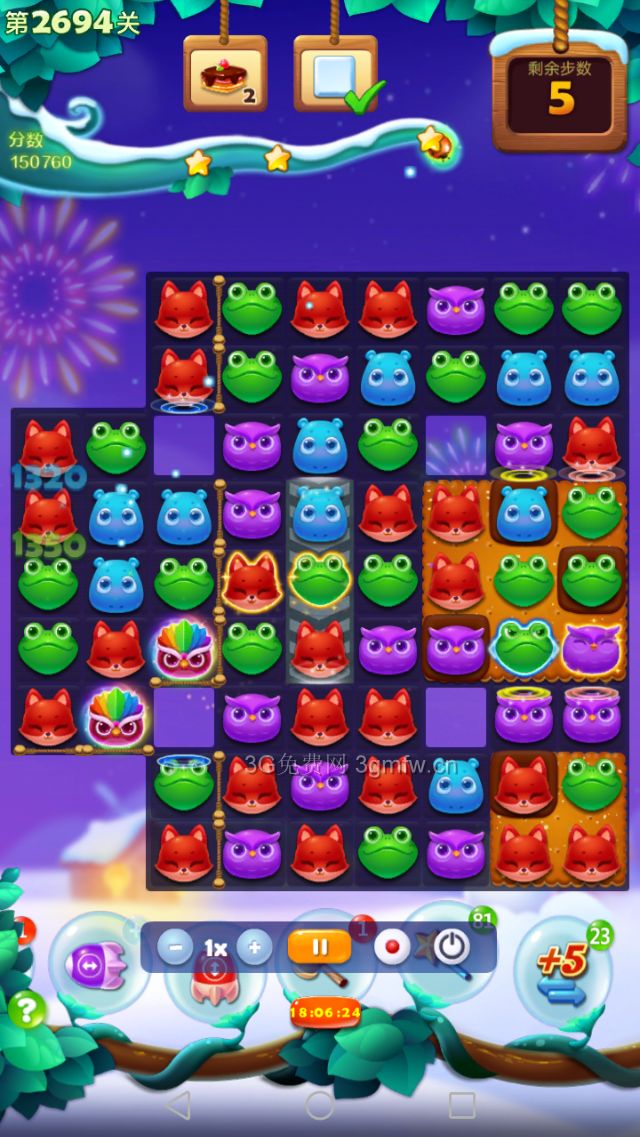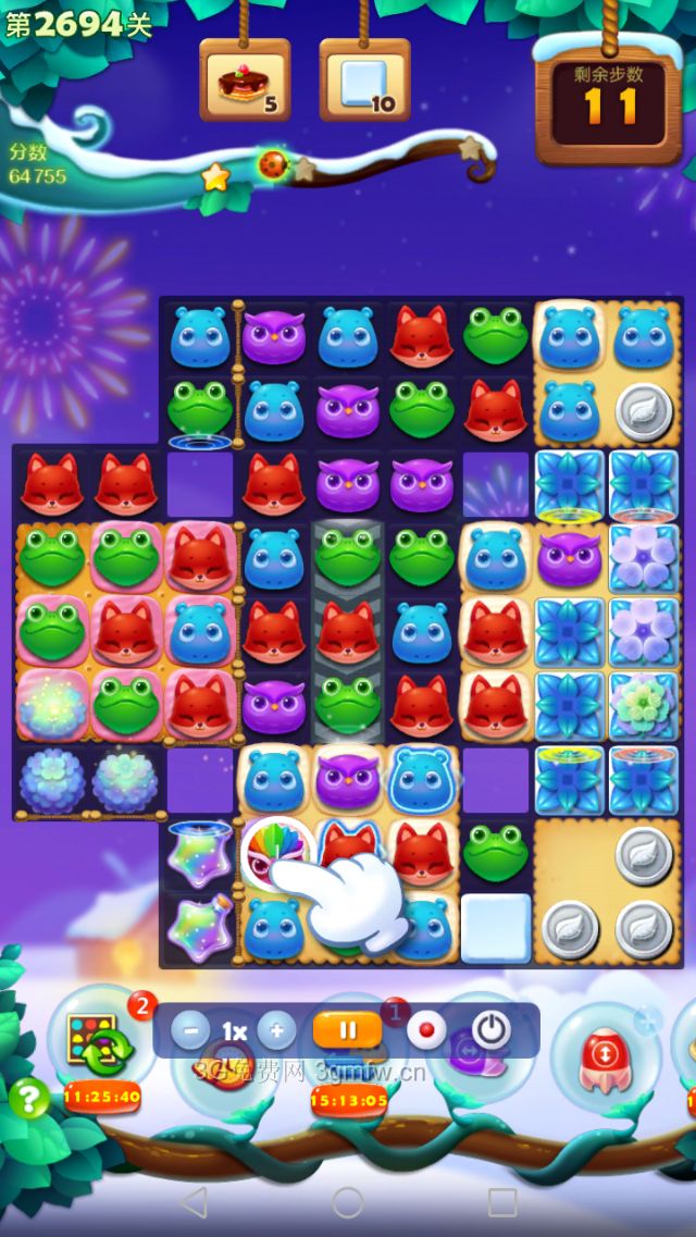 开心消消乐第2694关怎么打?开心消消乐是消除Q萌可爱的小动物们,将三个及以上相同颜色的小动物连成一条直线即可消除,老少皆宜!不会闯关的玩家快来看看G7小编带来的第2694关攻略吧!