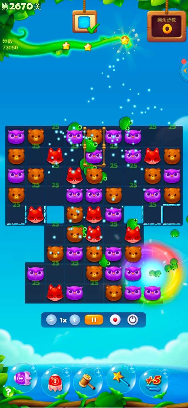 2、达到通关要求之后剩余步数会随机形成特效获得大量额外积分;